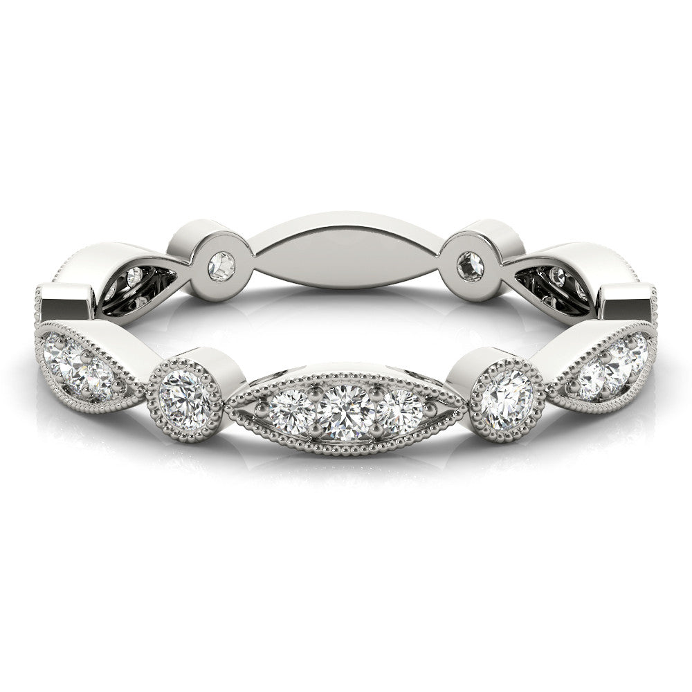 White gold Milgrain Marquise and Round Diamond Eternity Band with Bezel Setting