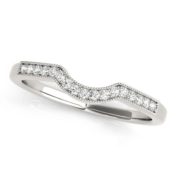 White gold Milgrain Pave Round Diamond Curved Band