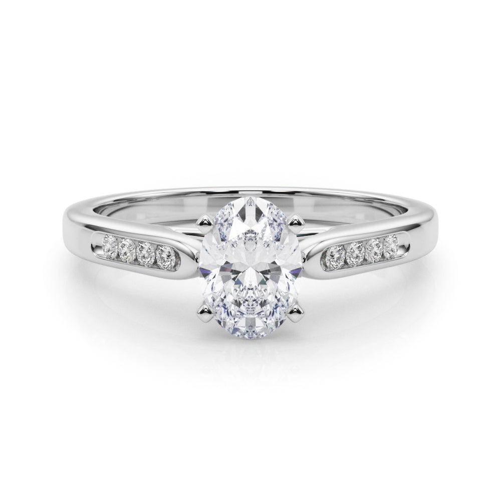 White gold Oval Cut Channel Set Solitaire Engagement Ring with Four-Prong Setting
