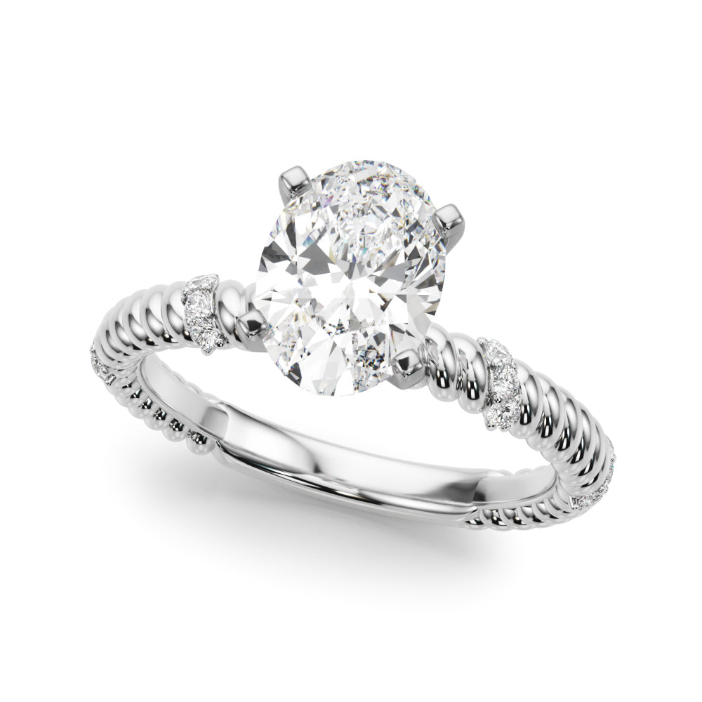 White gold Oval Solitaire Twisted Band Prong Set Engagement Ring