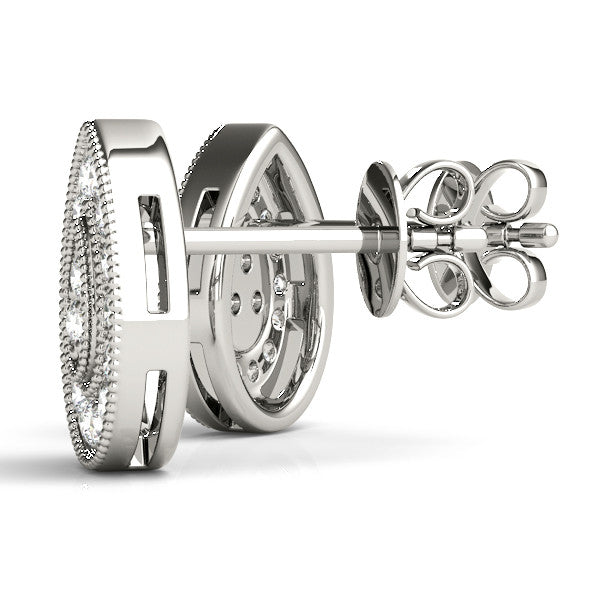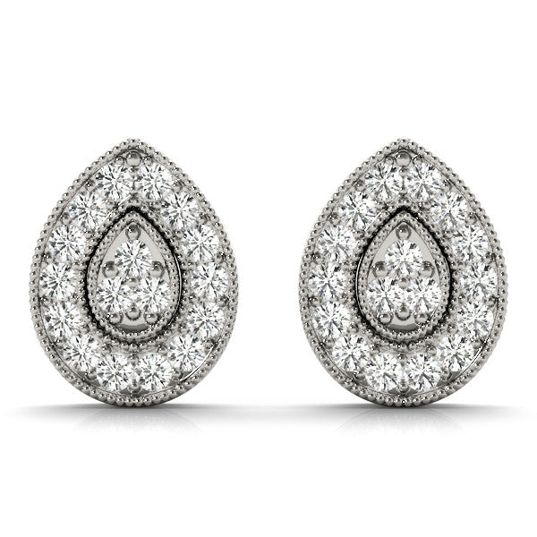 White gold Pavé Pear-Shaped Halo Stud Earrings with Milgrain Detailing