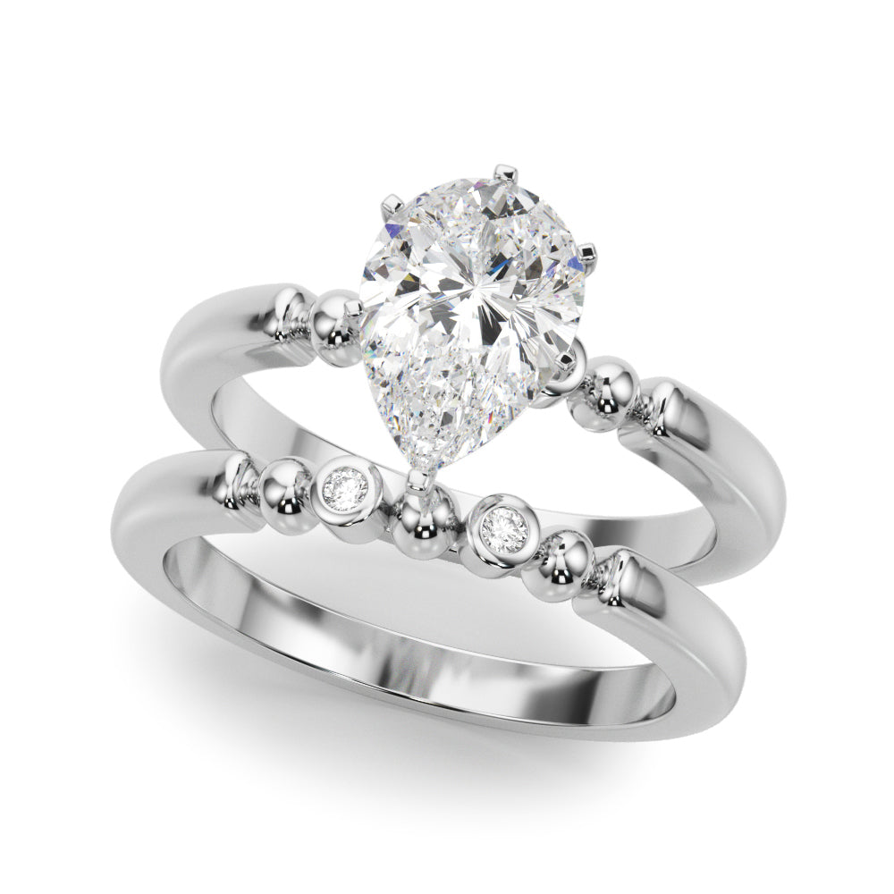 White gold Pear Solitaire Beaded Band with Four-Prong Setting