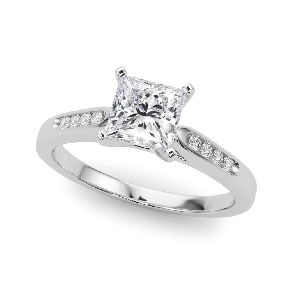 White gold Princess Cut Channel Set Solitaire Engagement Ring with Four-Prong Setting