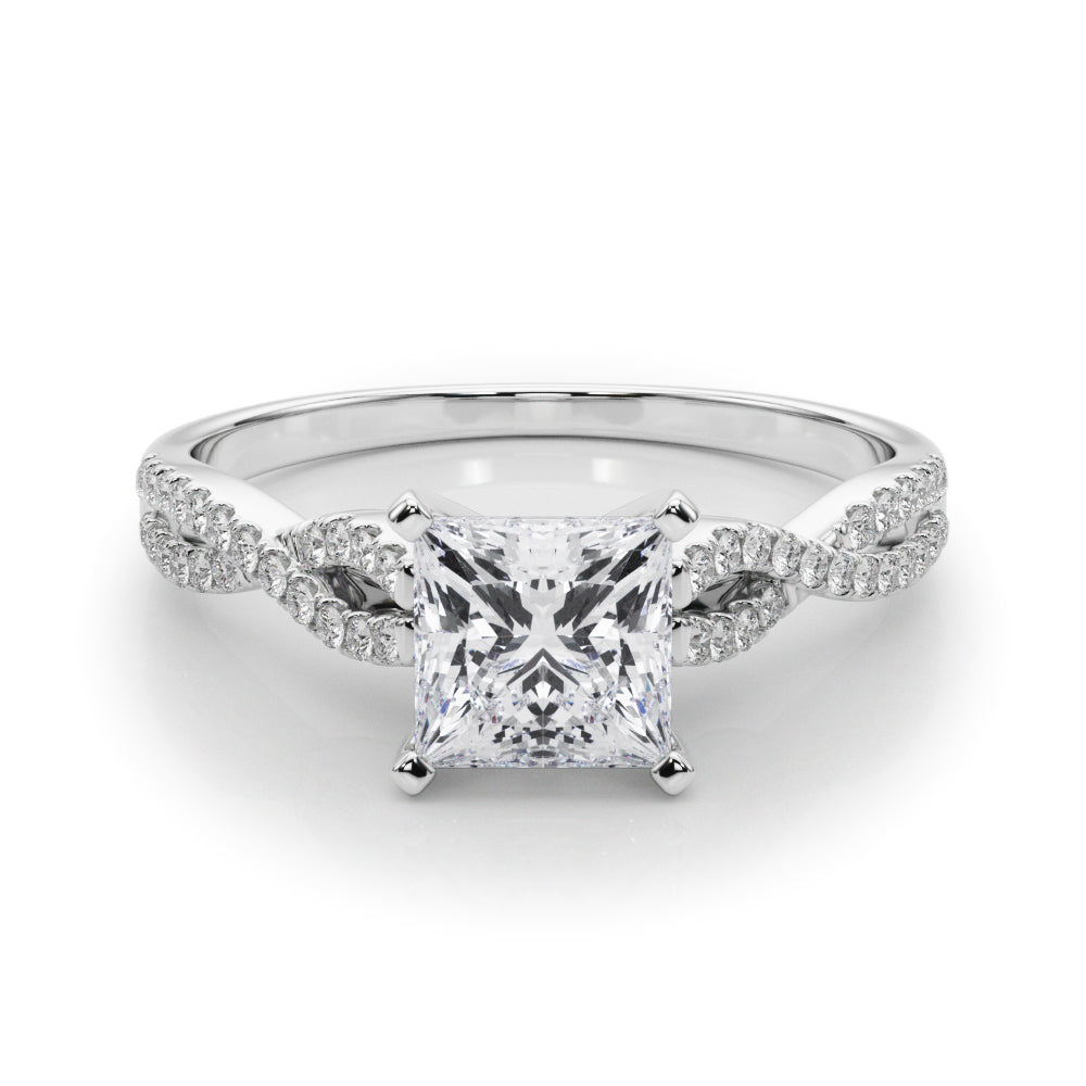 White gold Princess Solitaire Twisted Pave Diamond Engagement Ring with Four-Prong Setting