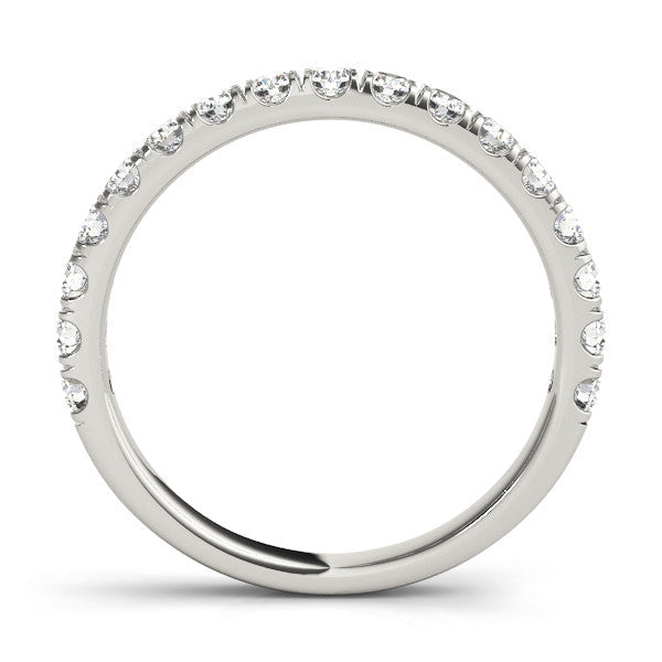 This elegant eternity band features a continuous circle of round brilliant diamonds, each meticulously set in a secure prong setting. The band is crafted from lustrous white gold, offering a timeless and sophisticated look. Perfect for marking special occasions or as a symbol of everlasting love, this band is designed to sparkle from every angle, making it a stunning addition to any jewelry collection.