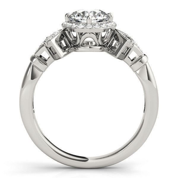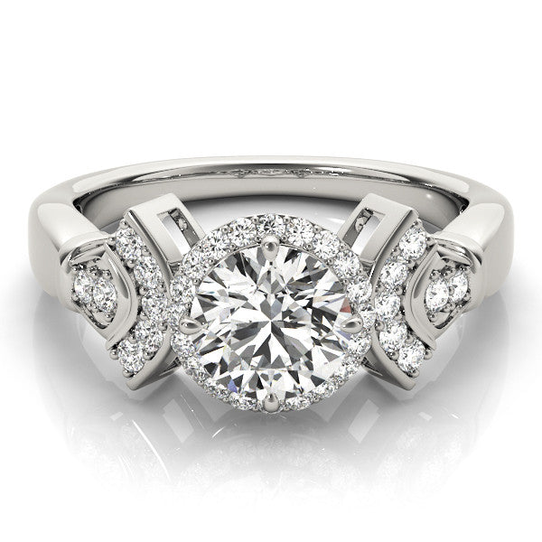 White gold Round Halo Diamond Split Shank Engagement Ring with Four-Prong Setting