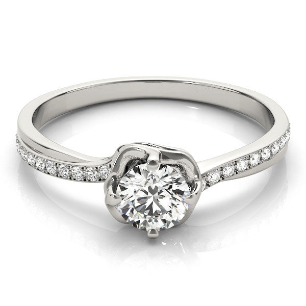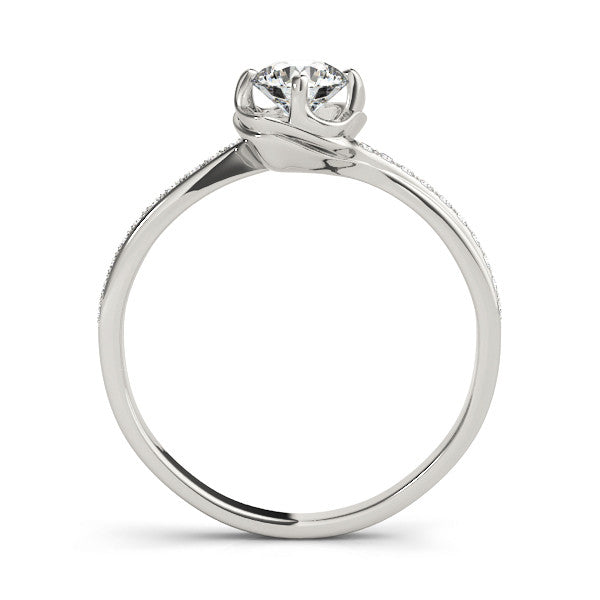 White gold Round Solitaire Diamond Ring with Pavé Band and Four-Prong Setting