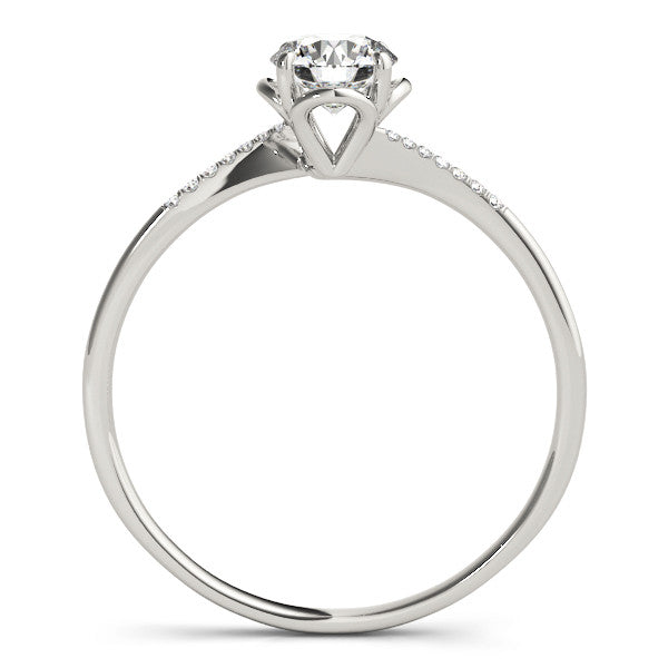 White gold Round Solitaire Diamond Ring with Pave Band and Four-Prong Setting