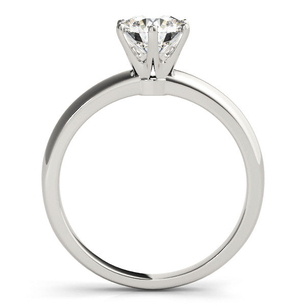 White gold Round Solitaire Diamond Ring with Six-Prong Setting on a Classic Band