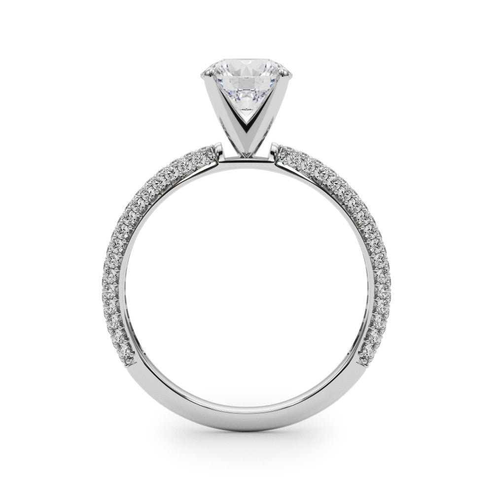 White gold Round Solitaire with Pave Band and Four-Prong Setting