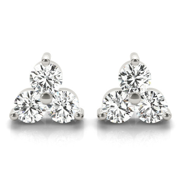 White gold Triangular Cluster Round Diamond Stud Earrings with Prong Setting