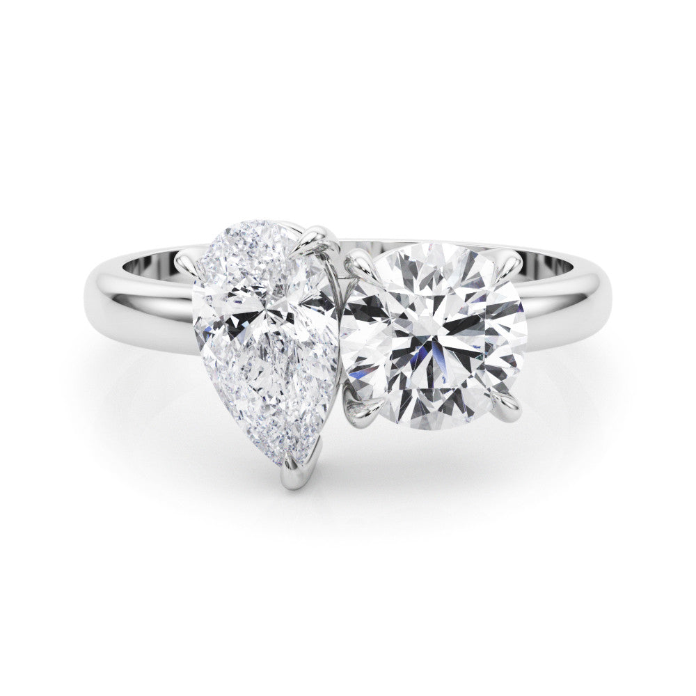 White gold Two-Stone Pear and Round Diamond Bypass Ring with Prong Setting