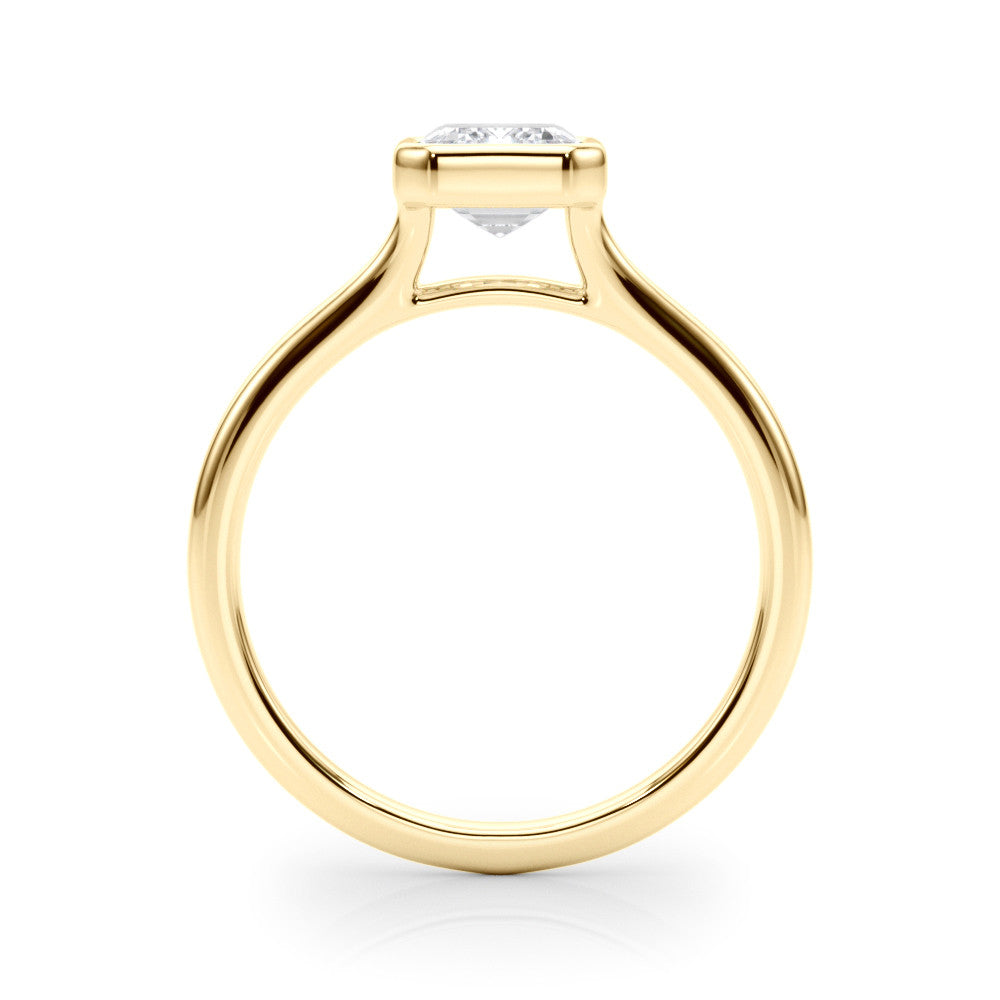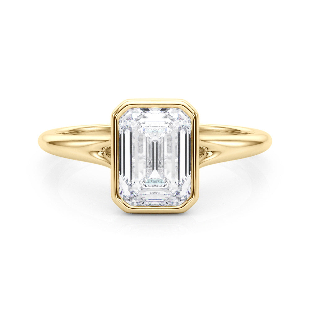 Yellow gold Bezel Set Emerald Cut Solitaire Ring with Tapered Band