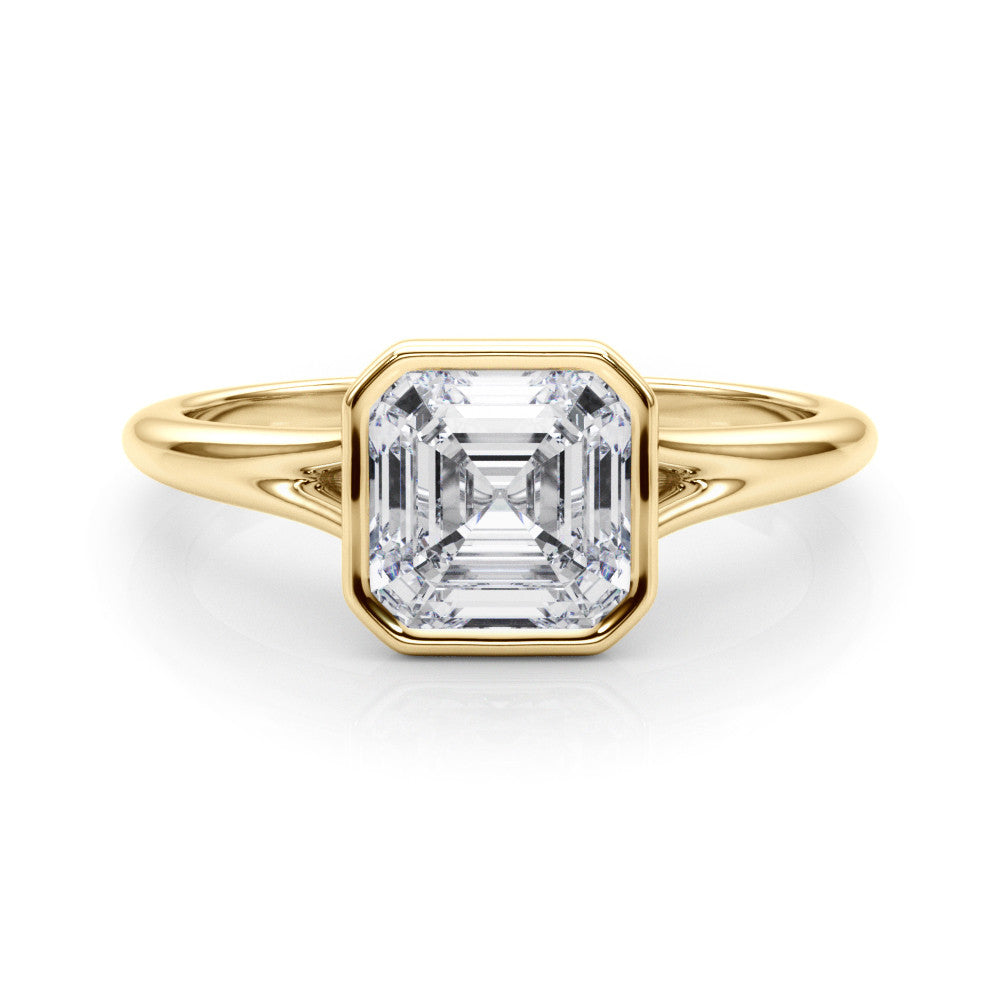Yellow gold Bezel Set Princess Cut Solitaire Ring