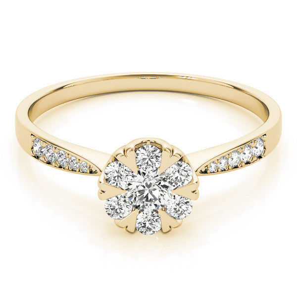 Yellow gold Cluster Round Diamond Pavé Band Flower Prong Setting Ring
