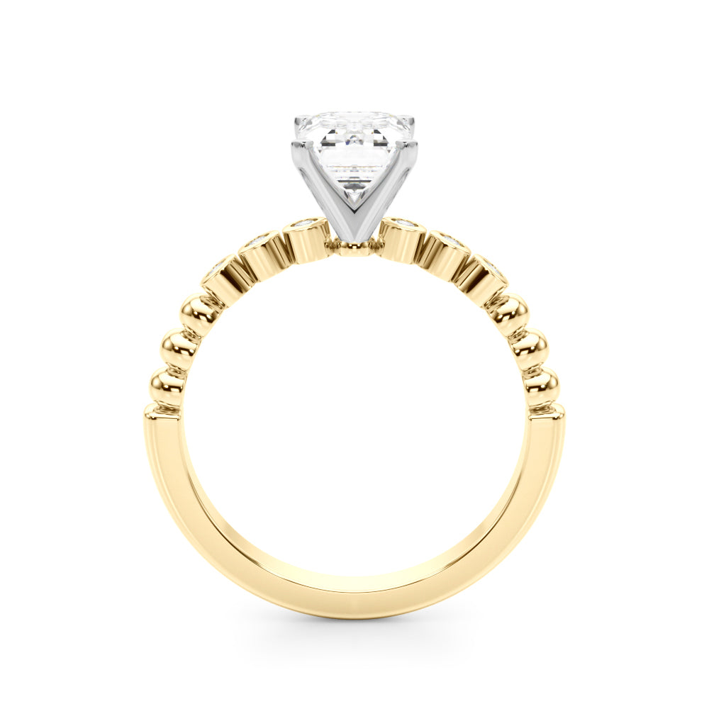 Yellow gold Emerald Solitaire Bezel Accent Diamond Engagement Ring with Beaded Band and Four-Prong Setting