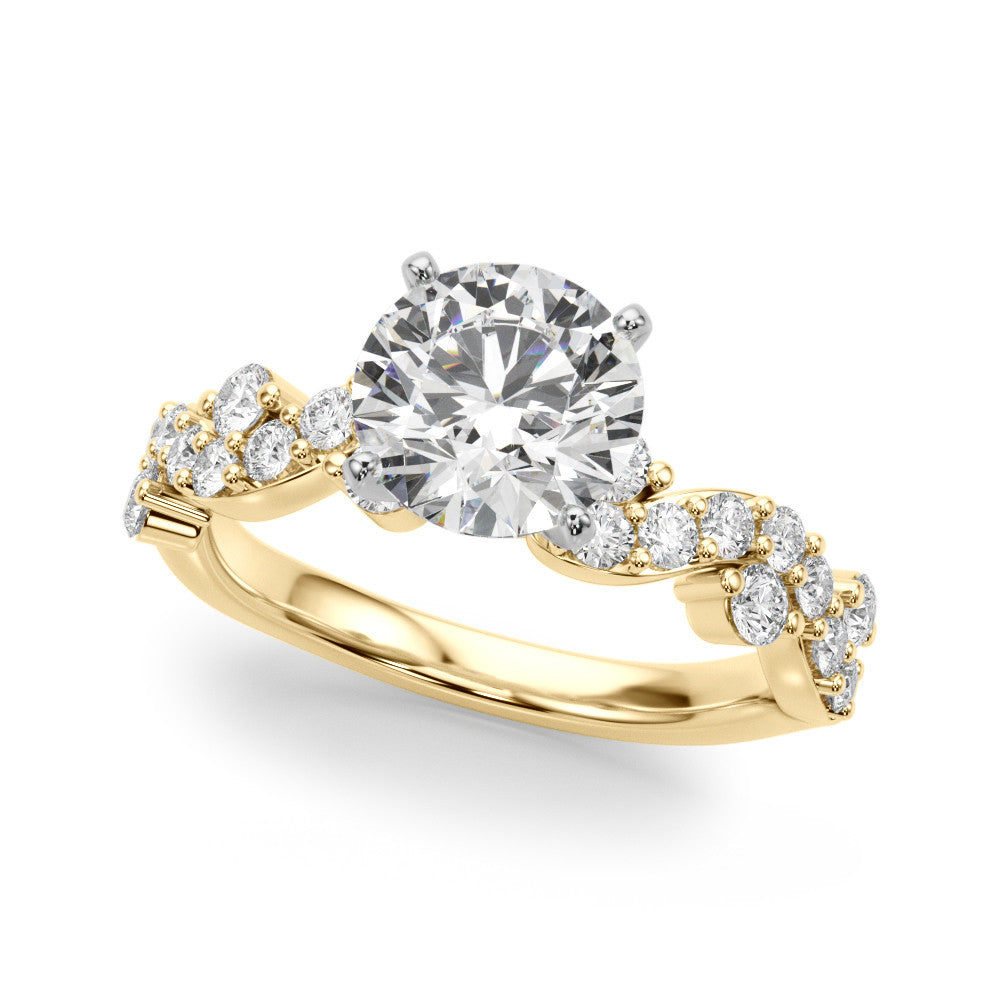 This exquisite ring features a stunning round cut solitaire diamond set in a classic four-prong setting. The elegant twisted band is adorned with a pave setting of smaller diamonds, adding a touch of sparkle and sophistication. Crafted from high-quality materials, this ring combines timeless beauty with modern design, making it a perfect choice for any special occasion.