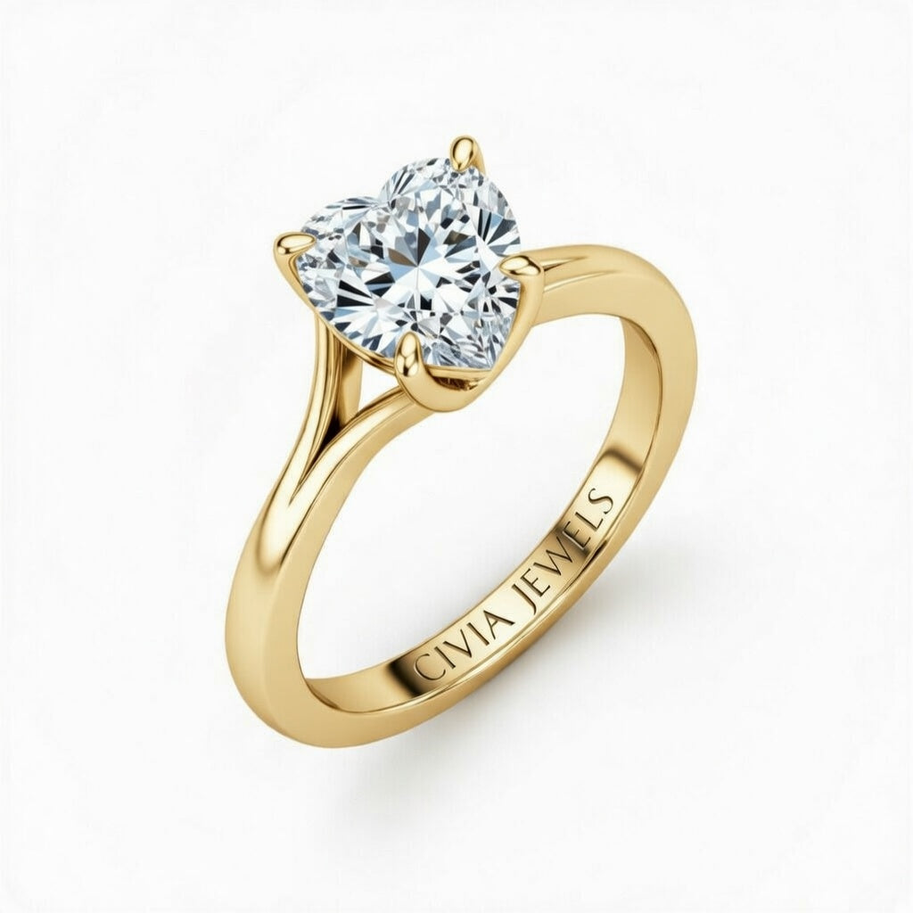 Yellow Gold Heart Cut Solitaire Engagement Ring with Sculpted Tapered Shank