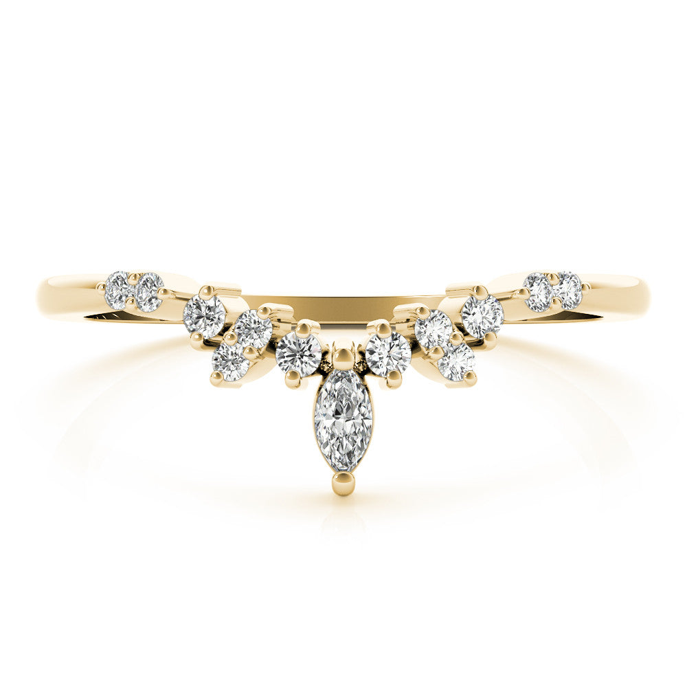 Yellow gold Marquise and Round Diamond Chevron Band with Prong Setting