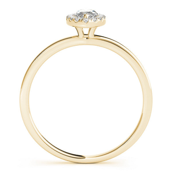 Yellow gold Marquise Halo Diamond Solitaire with Pavé Band and Four-Prong Setting
