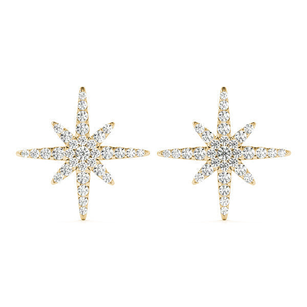 Yellow gold Pavé Diamond Starburst Stud Earrings