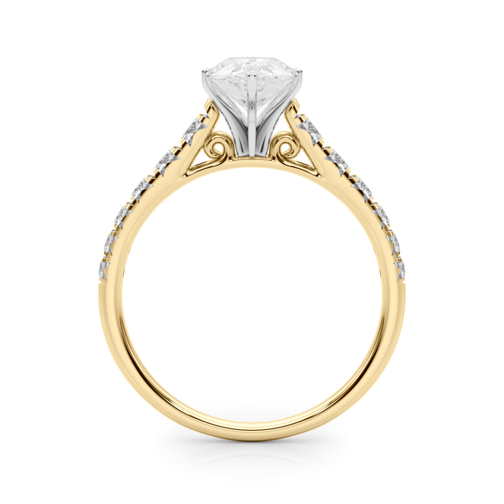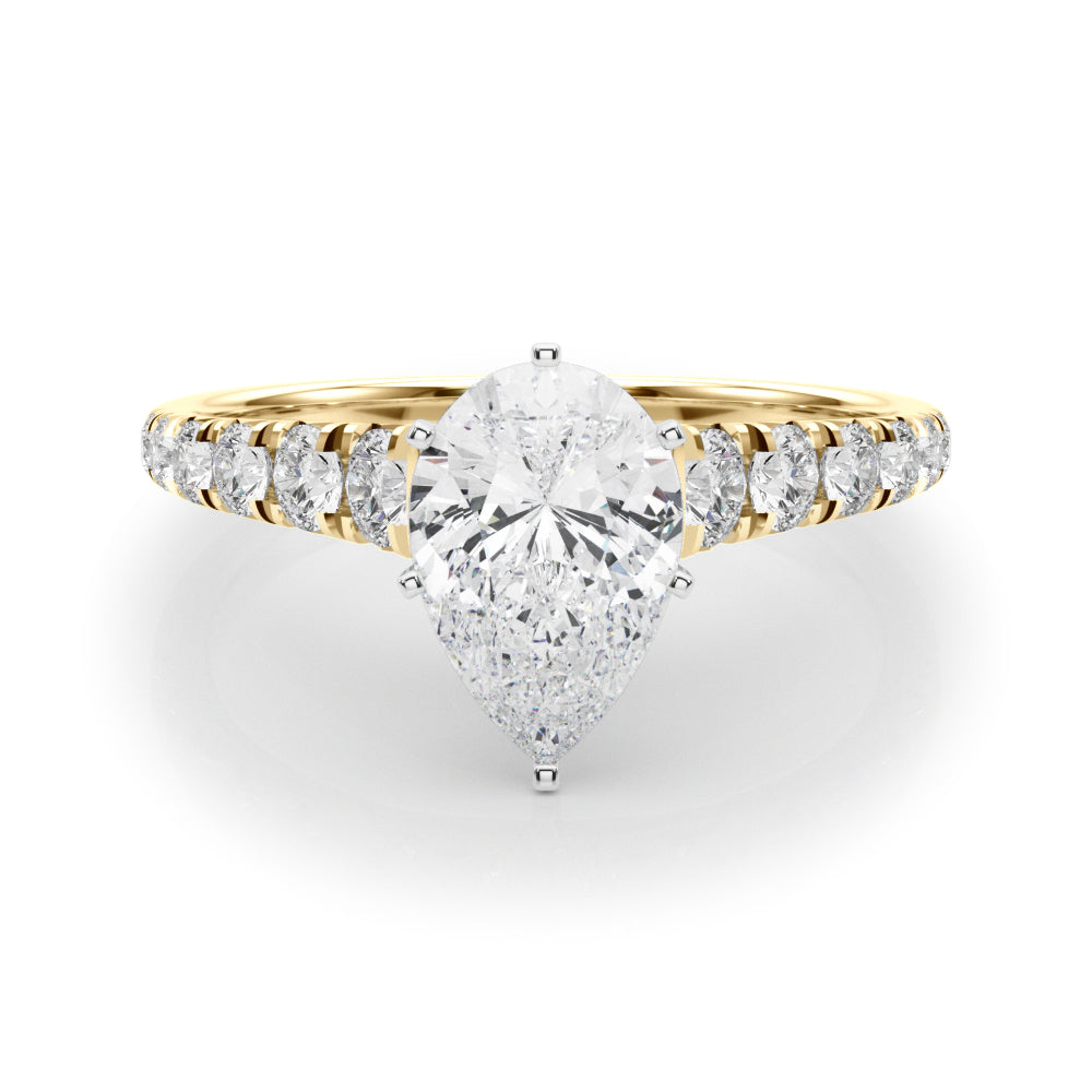 Yellow gold Pear Cut Diamond Solitaire with Pave Band and Four-Prong Setting