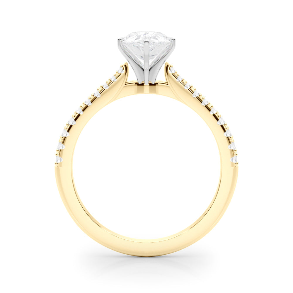 Yellow gold Pear Cut Solitaire Diamond Engagement Ring with Pave Band and Four-Prong Setting