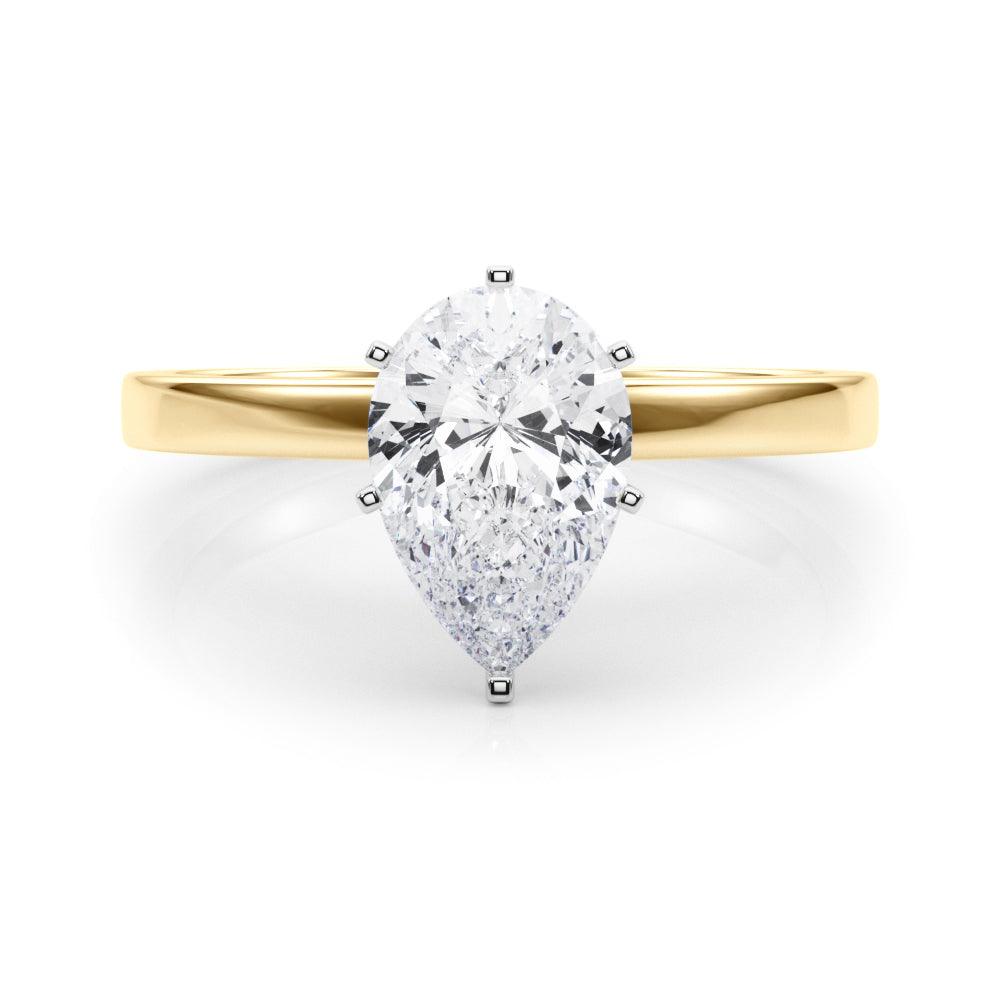 Yellow gold Pear Solitaire Diamond Engagement Ring with Four-Prong Setting on a Classic Band