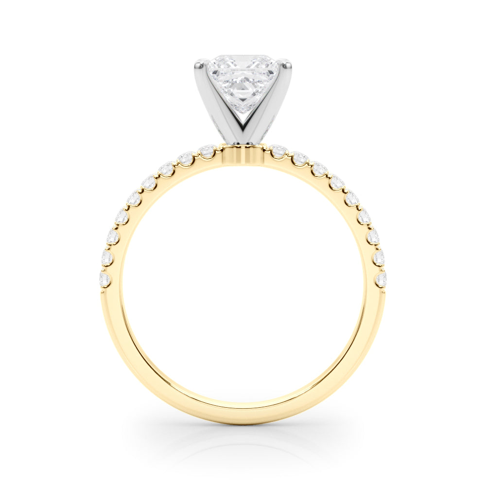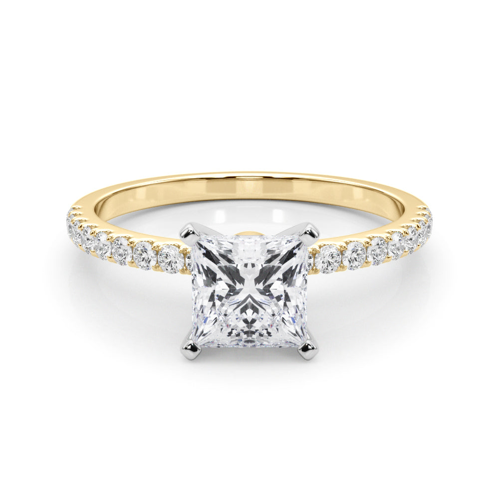Yellow gold Princess Solitaire Diamond Pavé Band with Four-Prong Setting
