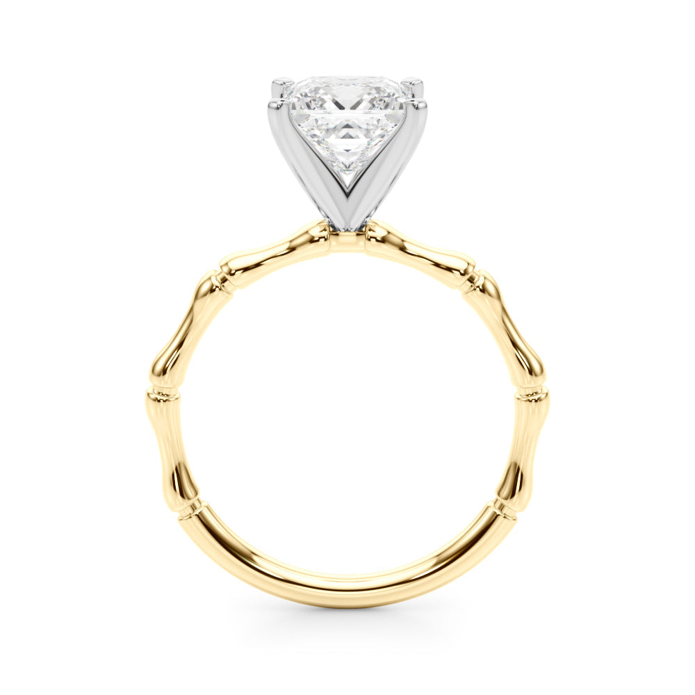 Yellow gold Princess Solitaire Diamond Ring with Bamboo Band and Four-Prong Setting