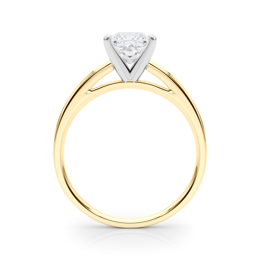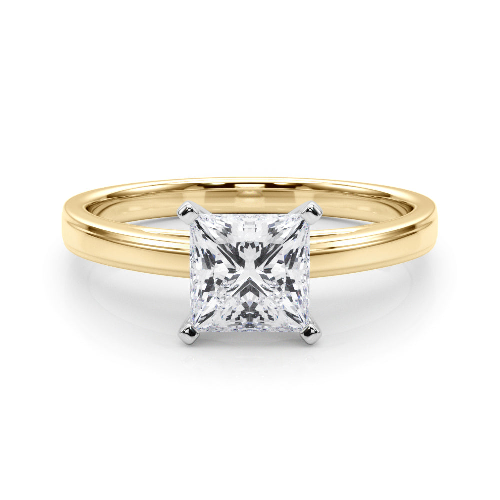 Yellow gold Princess Solitaire Diamond Ring with Four-Prong Setting and Classic Band
