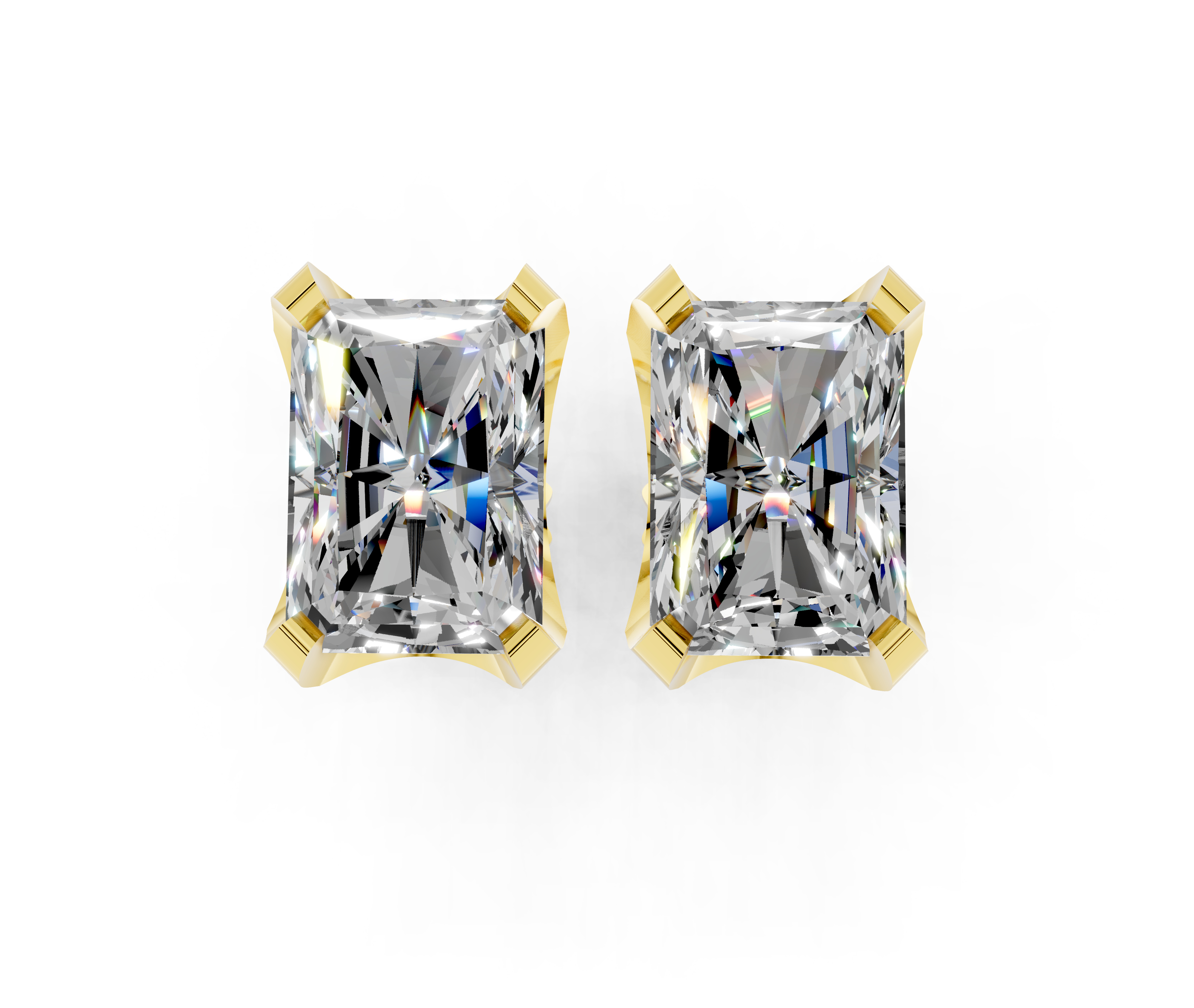 Yellow gold Radiant Brilliant Diamond Stud Earrings