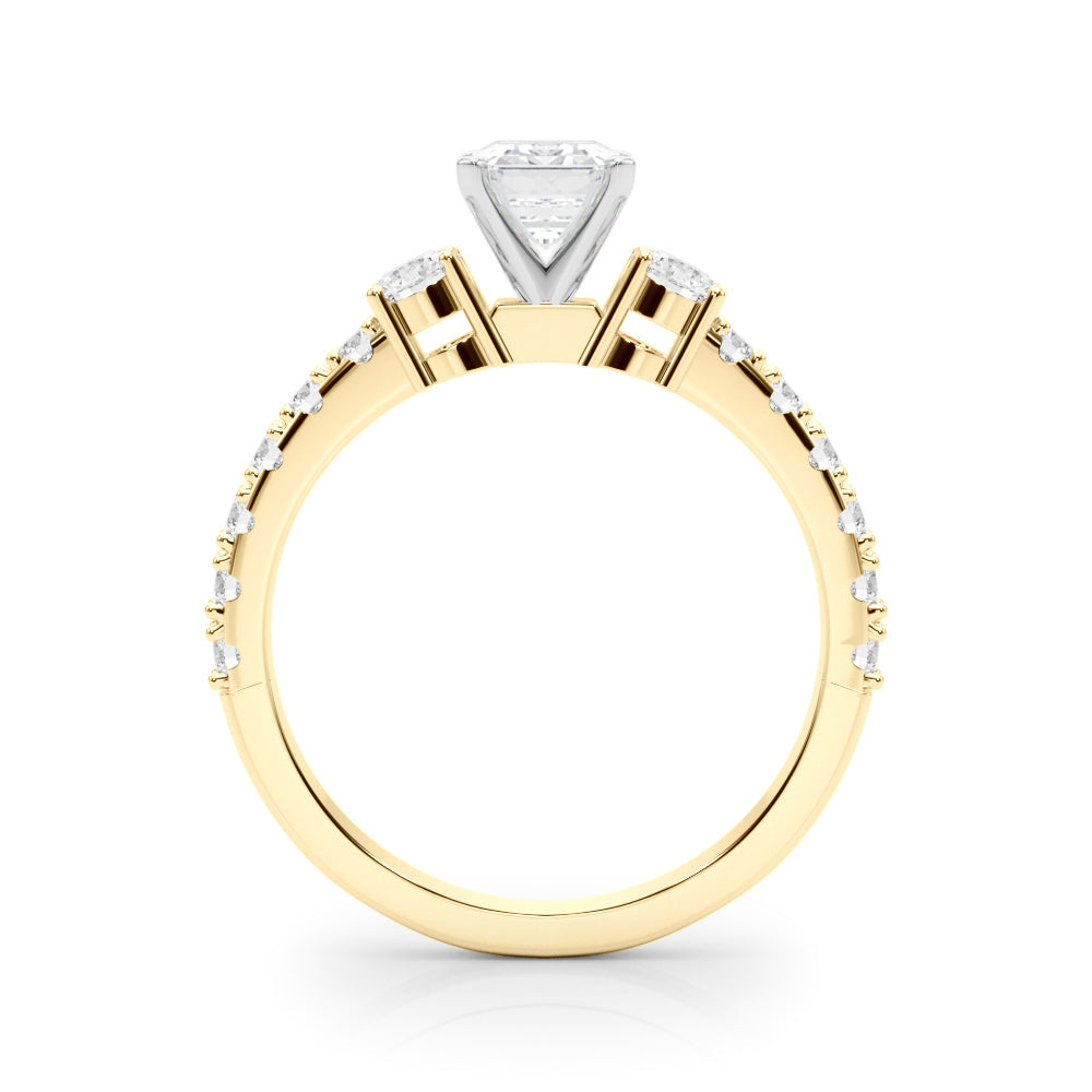 Yellow gold Radiant Cut Three-Stone Diamond Pavé Band with Prong Setting