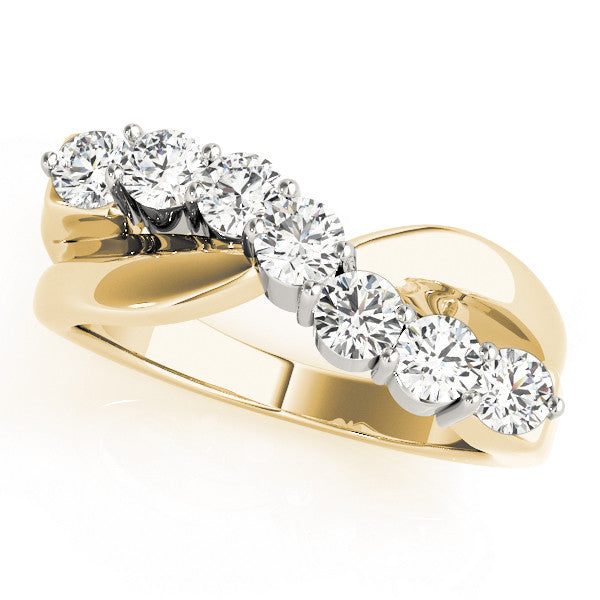 Yellow gold Round Brilliant Prong Set Diamond Crossover Band