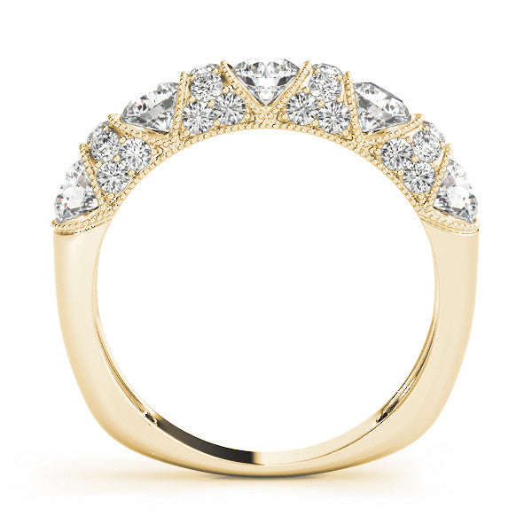 Yellow gold Round Cut Milgrain Diamond Half Eternity Band with Pave Setting