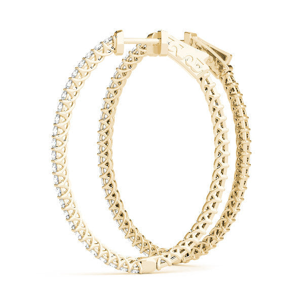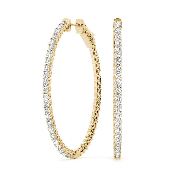 Yellow gold Round Cut Pave Diamond Hoop Earrings with Prong Setting