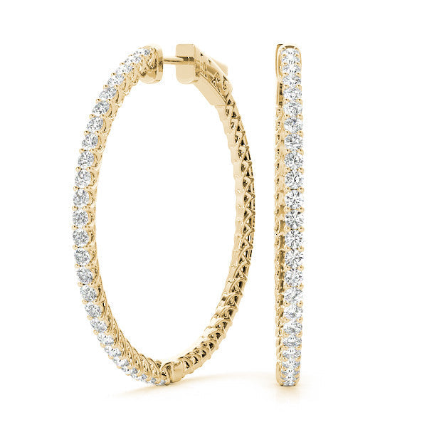 Yellow gold Round Diamond Pave Hoop Earrings with Prong Setting