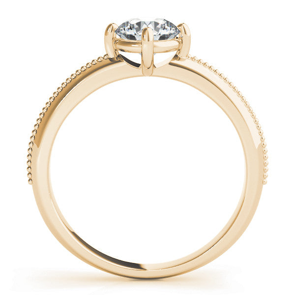 Yellow gold Round Solitaire Beaded Band with Four-Prong Setting