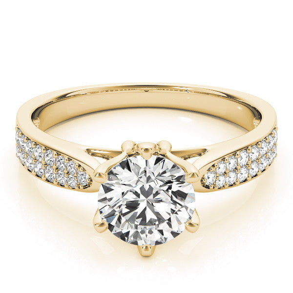 Yellow gold Round Solitaire Pavé Split Shank Six-Prong Diamond Ring