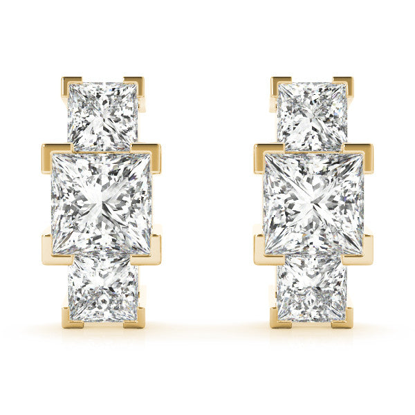 Yellow gold Three-Stone Princess Cut Channel Set Earrings with Bar Prong Setting