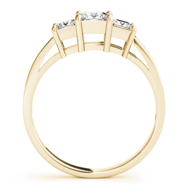 Yellow gold Three-Stone Princess Cut Solitaire Ring with Prong Setting